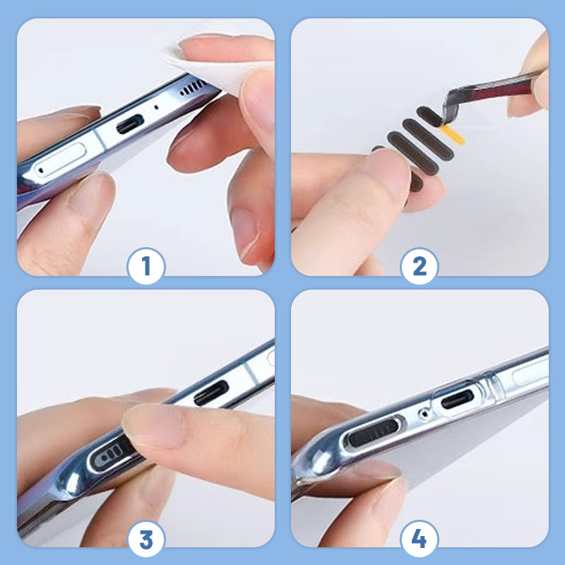 UTILISATION POLYVALENTE : Les autocollants anti-poussière pour téléphone conviennent à la plupart des modèles de téléphones portables et peuvent également être collés sur l’orifice du haut-parleur des coques de téléphone ou des tablettes.